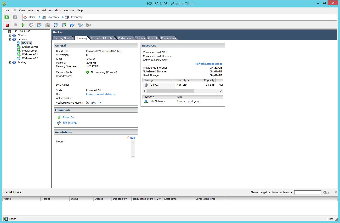 Jeg skulle ha investert i SSD disk. Kjøre 4-5 servere fra en og samme vanlige HDD tar tid, spesielt ved oppstart. Fra kaldstart tar det fort 15 minutter før jeg er oppe å går igjen.